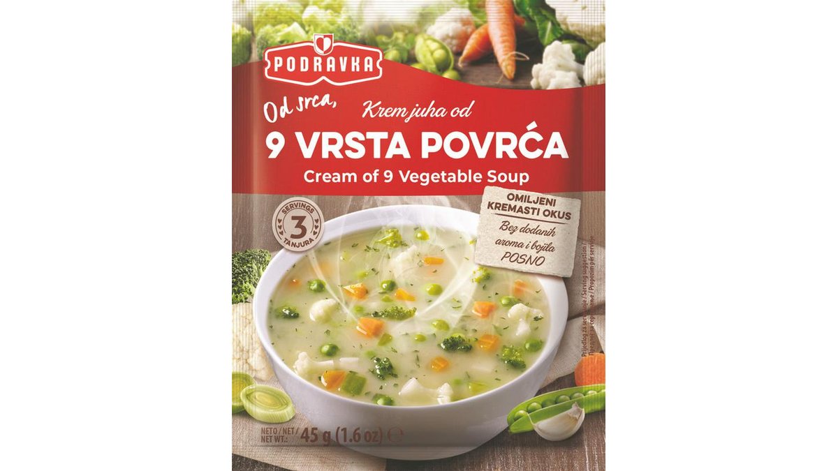 Juha Podravka, 9 vrst zelenjave, kremna, 45 g