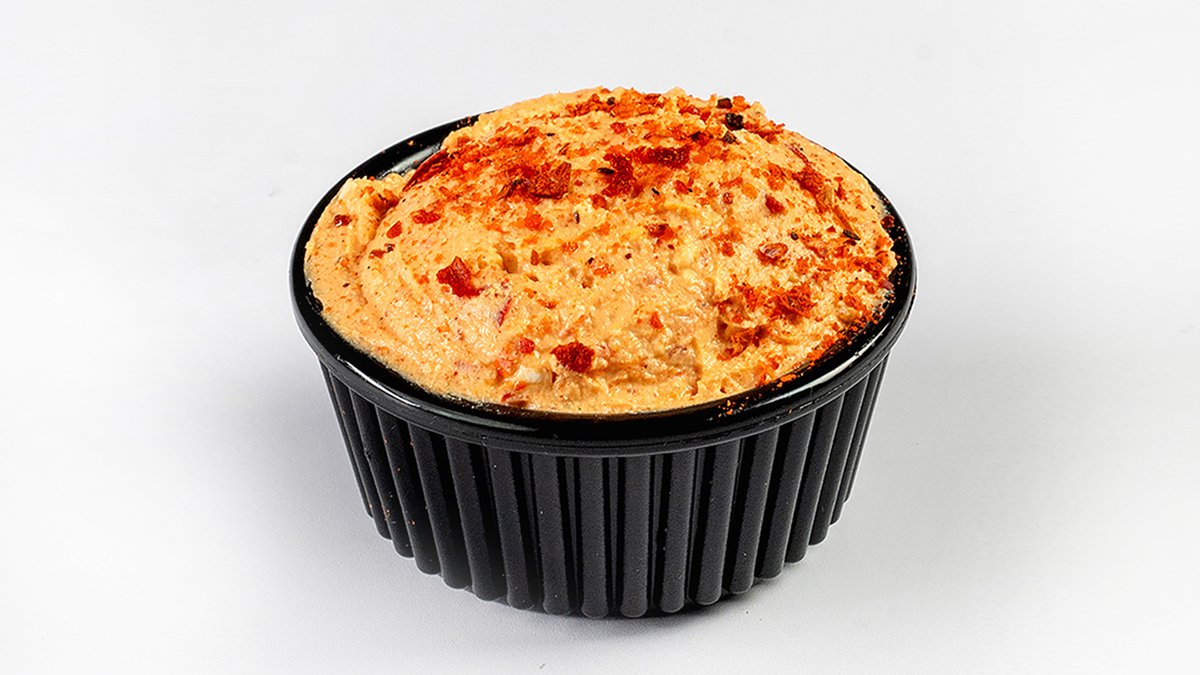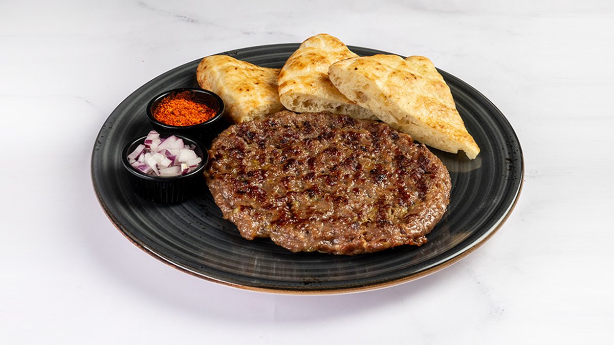 Junčje meso, začinjeno s čebulo in česnom 250 g, omaka iz kajmaka, ribani sir, drobljena paprika, lepinja V ceno jedi je vštet znesek 0.40 eur za biorazgradljivo embalažo