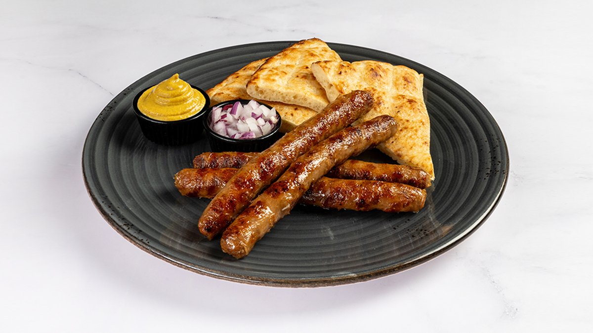 Tradicionalni čevapčiči iz čistega junjčjega mesa 125 g, čebula, lepinja V ceno jedi je vštet znesek 0.40 eur za biorazgradljivo embalažo