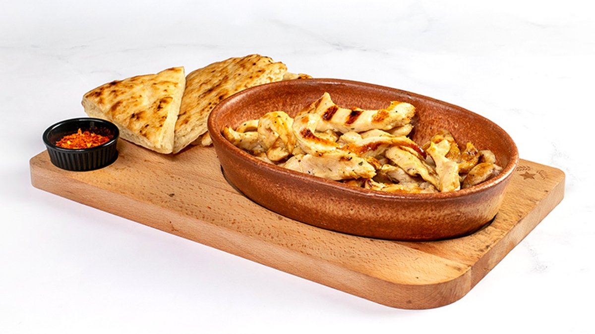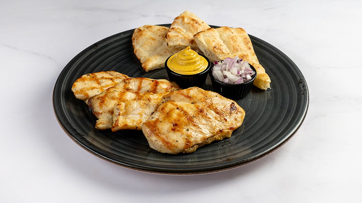 Marinirano piščančje meso 250 g, lepinja V ceno jedi je vštet znesek 0.40 eur za biorazgradljivo embalažo