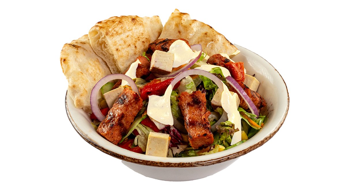 Zelje, paradižnik, kumara, pekoča paprika, rdeča čebula V ceno jedi je vštet znesek 0.40 eur za biorazgradljivo embalažo