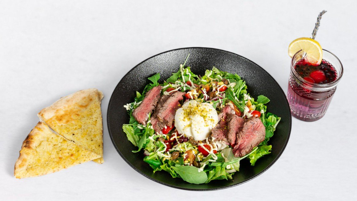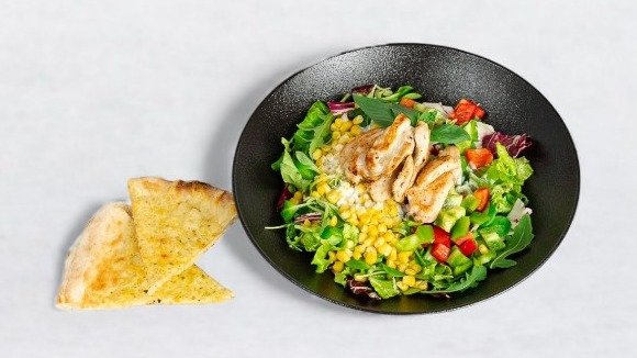 Piščanec, paprika, bučka, burrata, sveža bazilika V ceno jedi je všteto doplačilo 0.50 eur za biorazgradljivo embalažo