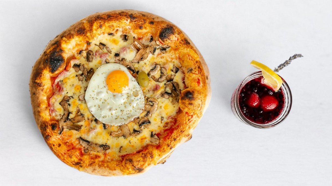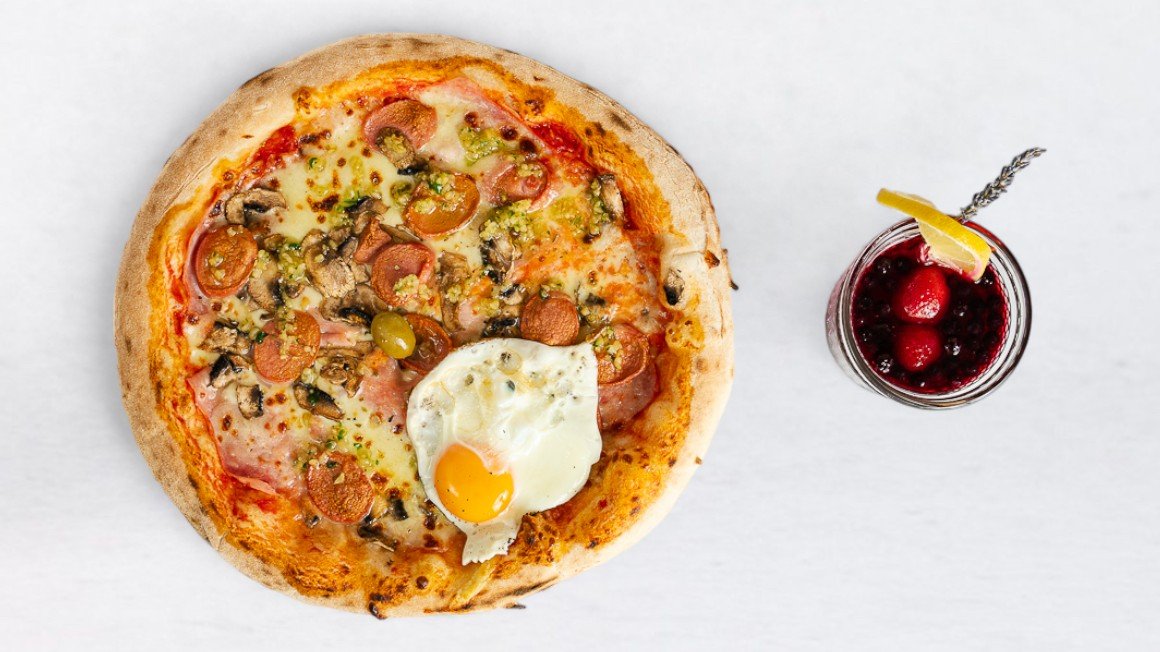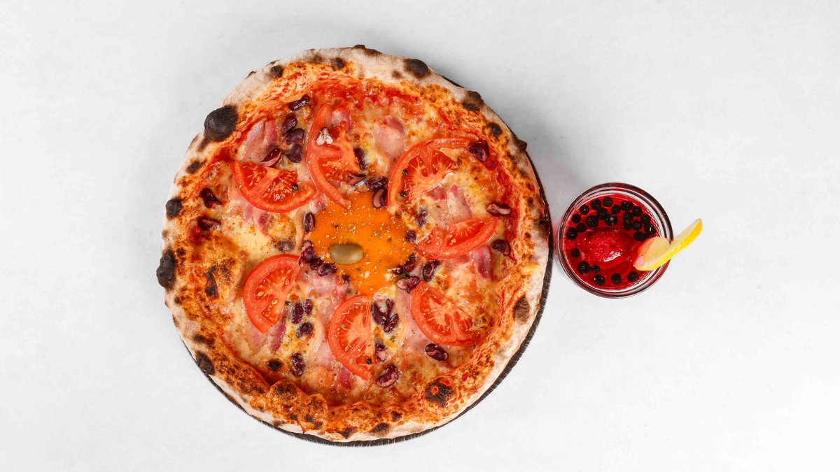 Pelati, sir, domača šunka, šampinjoni, jajce, oliva, origano V ceno jedi je všteto doplačilo 0.60 eur za biorazgradljivo embalažo
