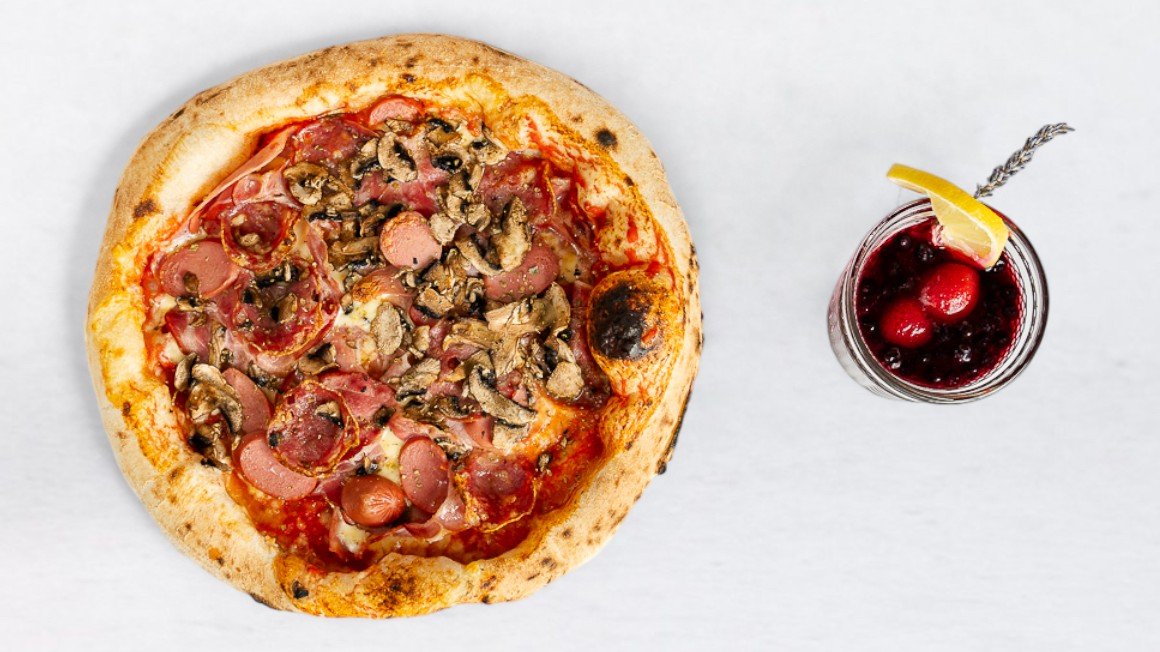 Pelati, sir, suha salama, šampinjoni, kisla smetana, oliva, origano V ceno jedi je všteto doplačilo 0.60 eur za biorazgradljivo embalažo