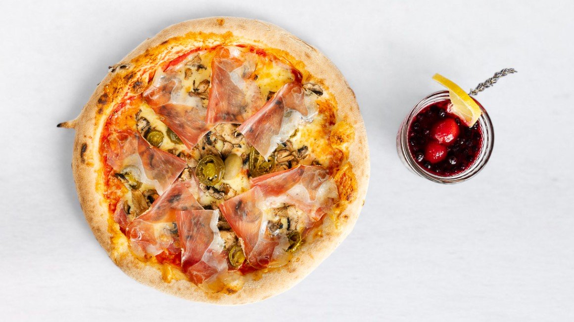 Pelati, sir, kuhan pršut, oliva, origano V ceno jedi je všteto doplačilo 0.60 eur za biorazgradljivo embalažo