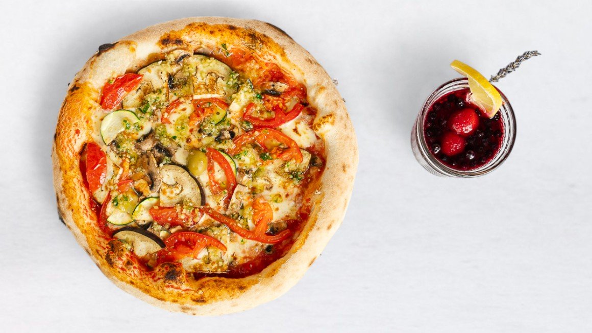 Pelati San Marzano D.O.P. mozzarella (pr´Matevž), sir, treviški radič, sončni paradižniki, pečenica, ocvirki, italijanska rikota, oliva V ceno jedi je všteto doplačilo 0.60 eur za biorazgradljivo embalažo
