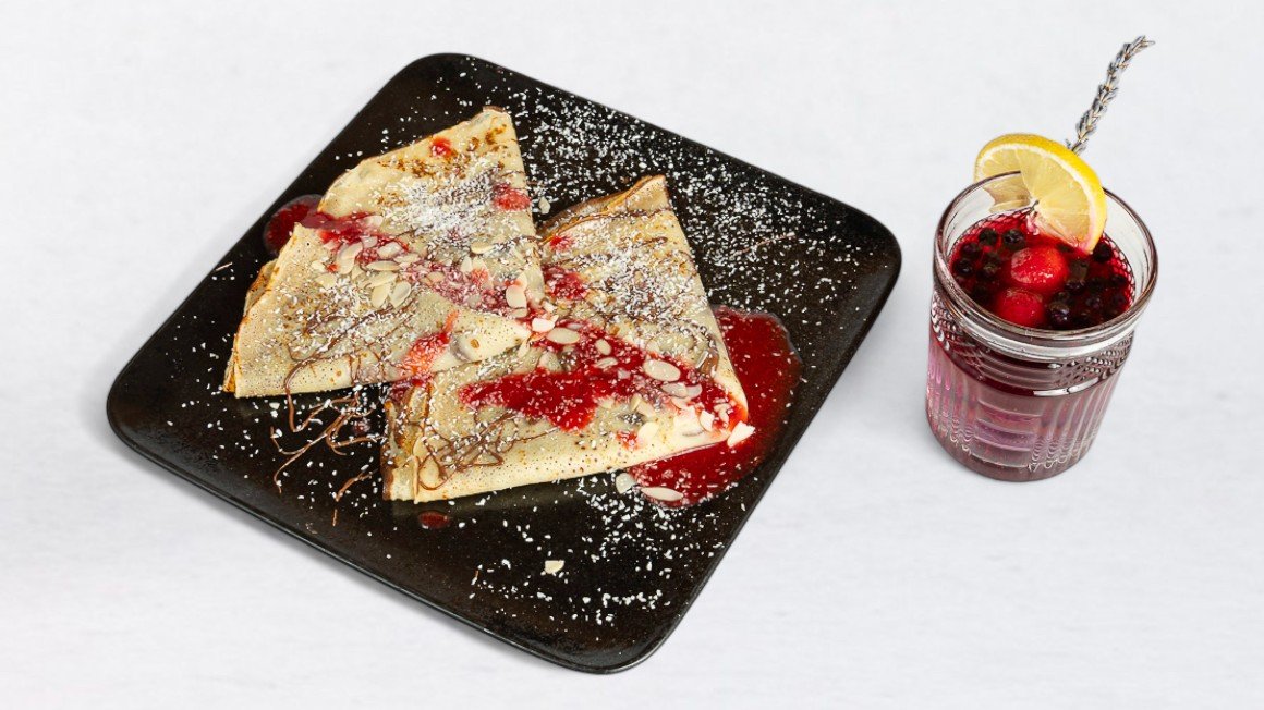Orehove palačinke s pravo čokolado in domači sok 0.33 l