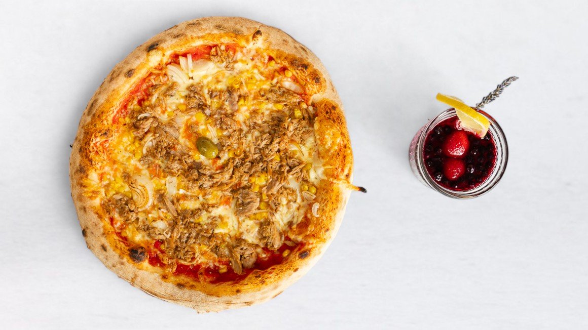 Pelati, sir, tuna, čebula, koruza, oliva, origano V ceno jedi je všteto doplačilo 0.60 eur za biorazgradljivo embalažo