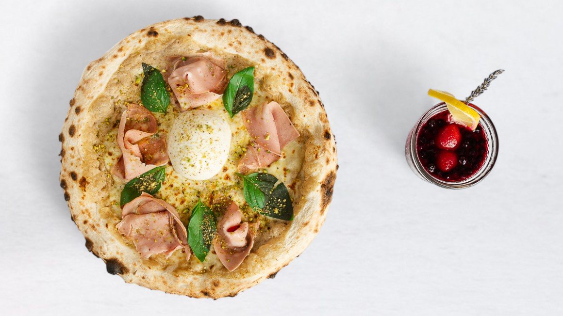 Pelati San Marzano DOP, mozzarella (pr´Matevž), kraški pršut, rukola, burrata, ekstra deviško pomarančno olje (Lisjak), istrski tartuf, olive taggiasche V ceno jedi je všteto doplačilo 0.60 eur za biorazgradljivo embalažo