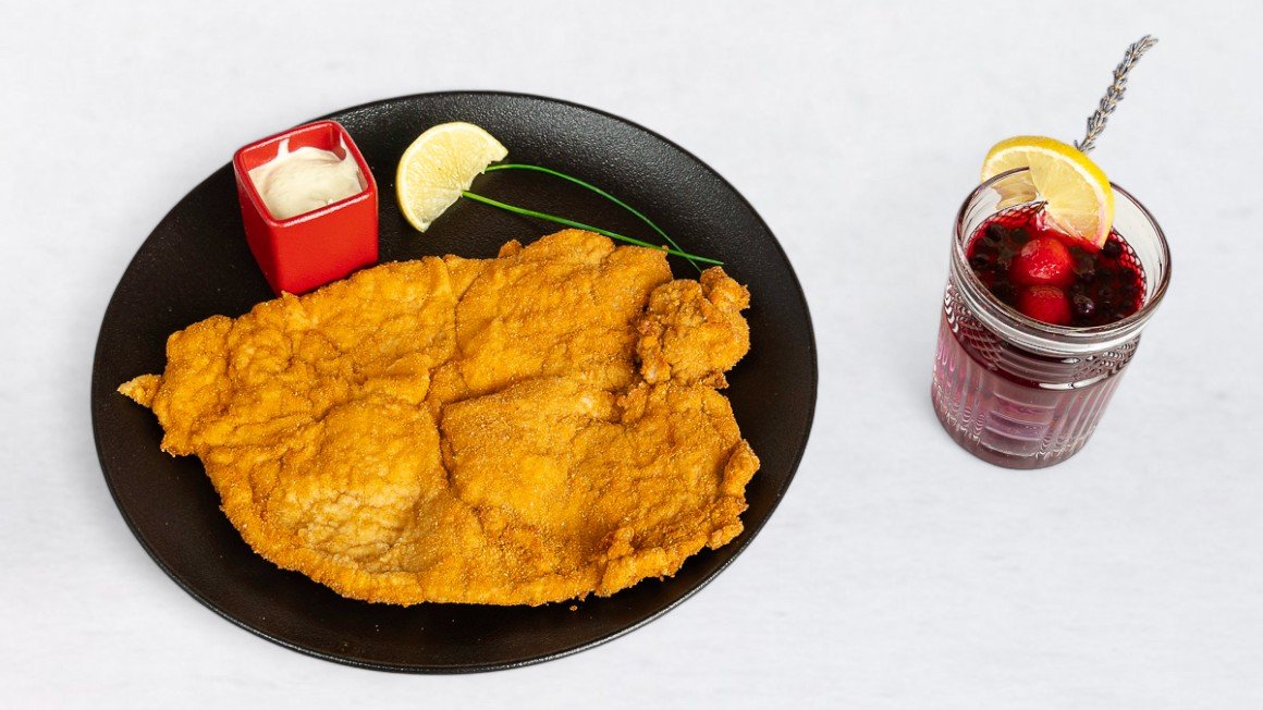 Zrezek po dunajsko z domačo tatarsko omako in domači sok 0.33 l
