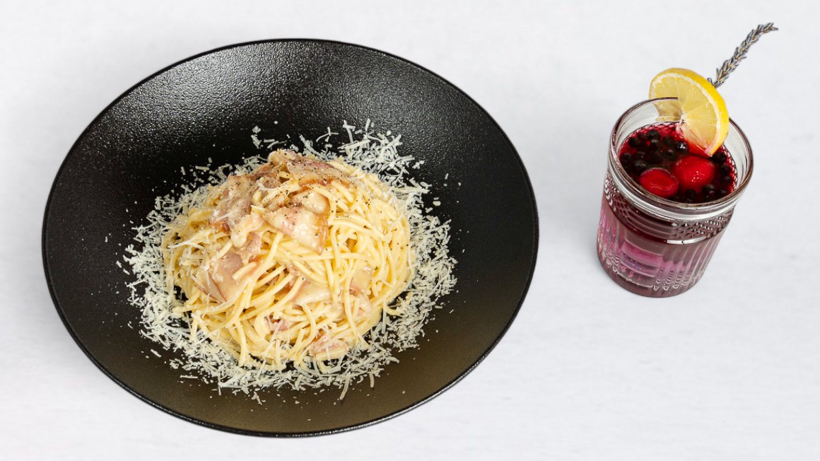 Guanciale, grana, smetana, jajce, poper V ceno jedi je všteto doplačilo 0.50 eur za biorazgradljivo embalažo