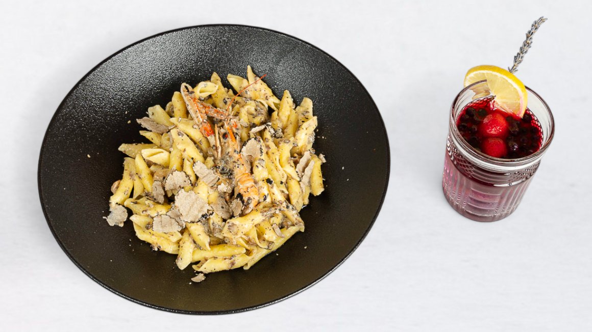 Istrski fuži s škampi in tartufi in domači sok 0.33 l
