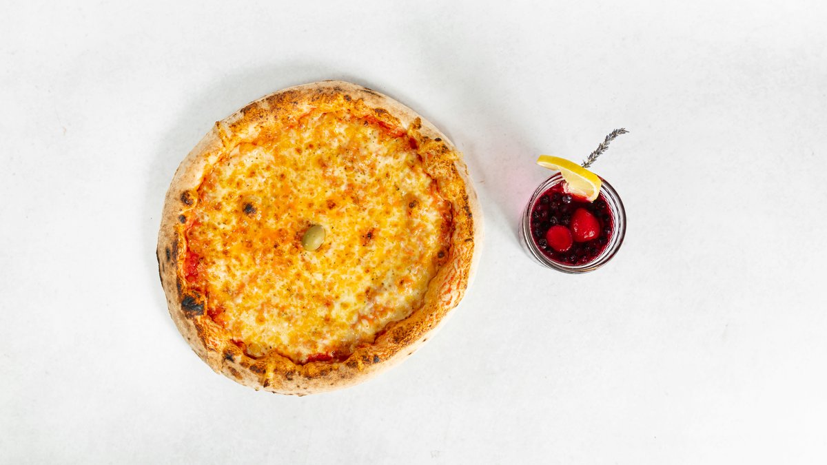 Pelati, sir, mozzarella, gorgonzola, grana padano, oliva, origano V ceno jedi je všteto doplačilo 0.50 eur za biorazgradljivo embalažo