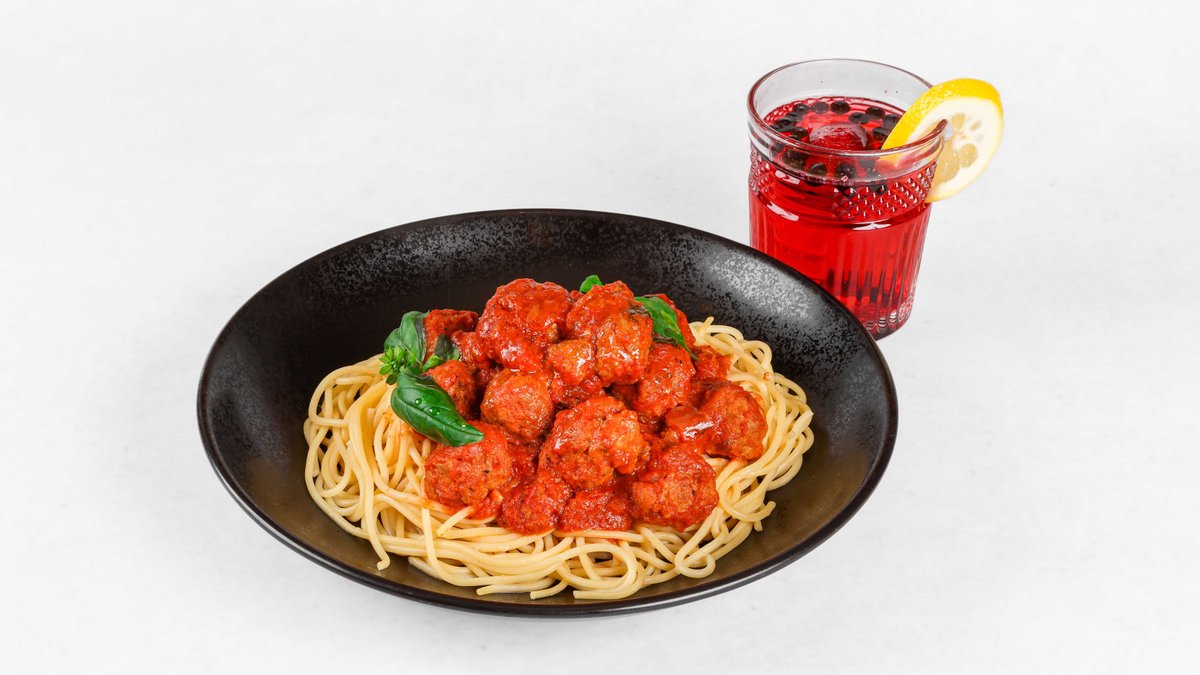 Špageti z mesnimi kroglicami in domači sok 0.33 l