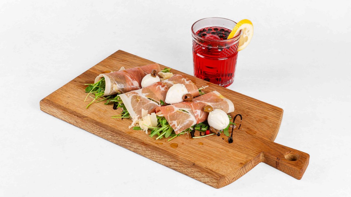 Rolice kraškega pršuta (3 kosi) in domači sok 0.33 l