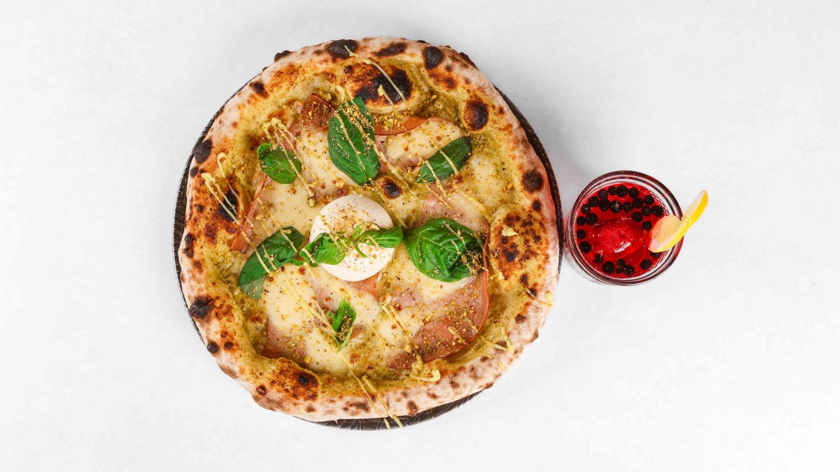 Kremna omaka s pestom, mozzarella (pr´Matevž), mortadela, burrata, sveža bazilika, pistacijina krema, pistacije V ceno jedi je všteto doplačilo 0.60 eur za biorazgradljivo embalažo