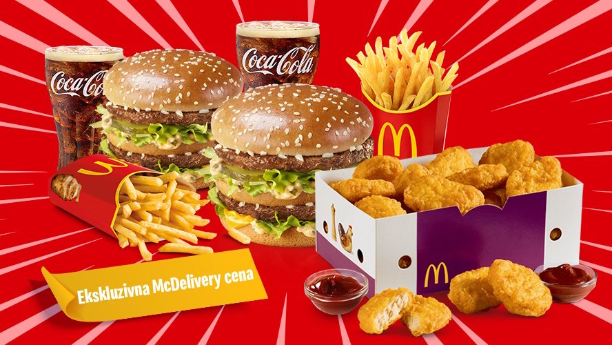 McDonald’s je ena najbolj prepoznavnih blagovnih znamk v svetu in pri nas, ki je postala sinonim za hitro in kakovostno postrežbo hrane in pijače. Od konca leta 1993, ko smo na Čopovi ulici v Ljubljani odprli našo prvo restavracijo, smo se razvili v največje slovensko gostinsko podjetje. Naroči dobrote iz McDonald’sa v eni izmed enot v Ljubljani: McDonald’s Odiseja, McDonald’s Cankarjeva, McDonald’s Šmartinka, McDonald’s Aleja, McDonald’s Šiška, McDonald’s Rudnik, McDonald’s Supernova Rudnik, McDonald’s Barje Sever in McDonald's Center. Informacije o alergenih najdeš zapisane pod vsakim posameznim artiklom na povezavi: https://www.mcdonalds.si/ponudba/ Zaradi velikega povpraševanja in motenih dobavnih verig se lahko pripeti, da moramo pri promocijskih izdelkih kdaj kakšno sestavino zamenjati. Na primer uporabiti drugačen hlebček ali drugo vrsto sira, kot je predvidena v originalni recepturi. Za to se iskreno opravičujemo in zagotavljamo, da bodo vsi izdelki, ki jih bomo pripravili, brezhibne kakovosti in okusni kot vedno.