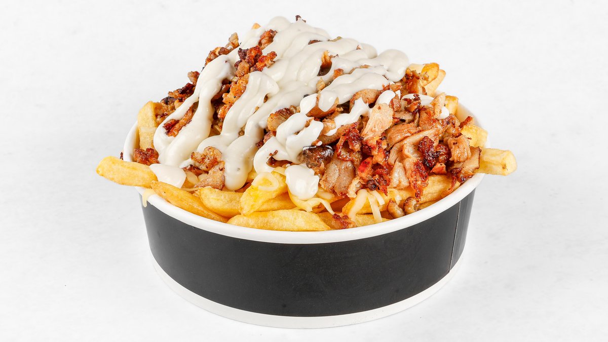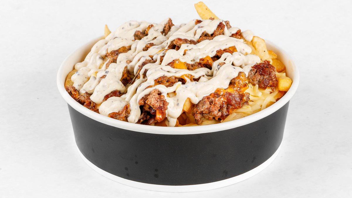 Pomfri, mix sirov, goveje burger meso, cheddar, tartuf omaka