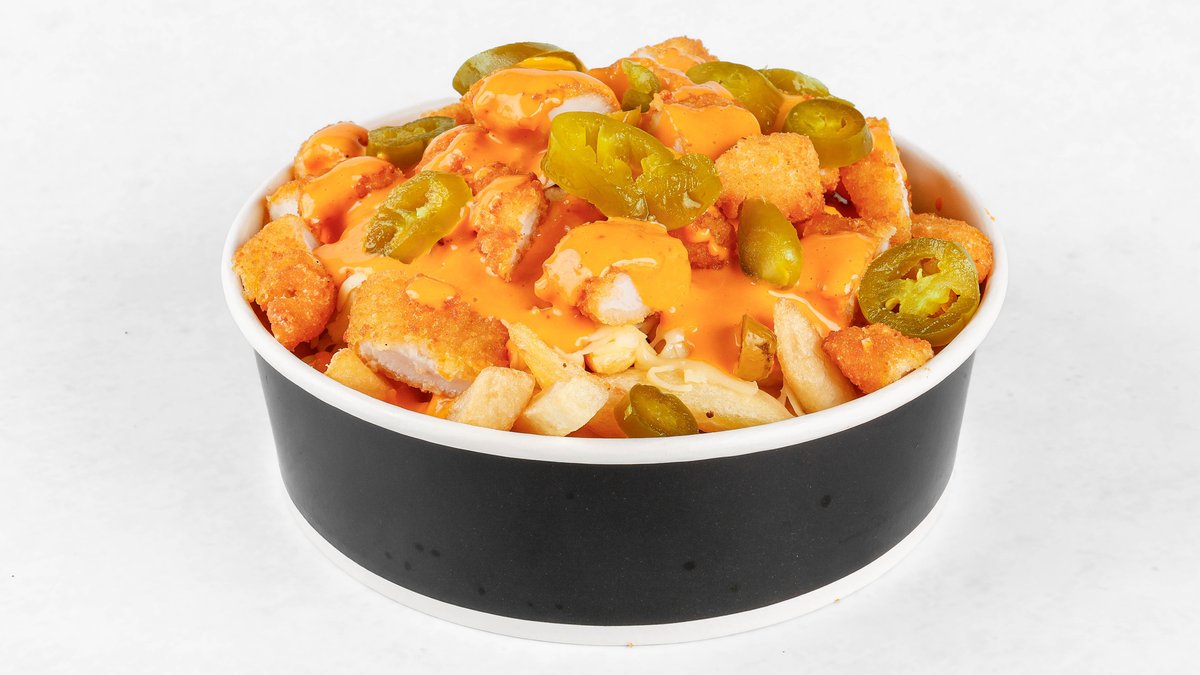 Pomfri, mix sirov, ocvrt piščanec, jalapeno, nacho omaka