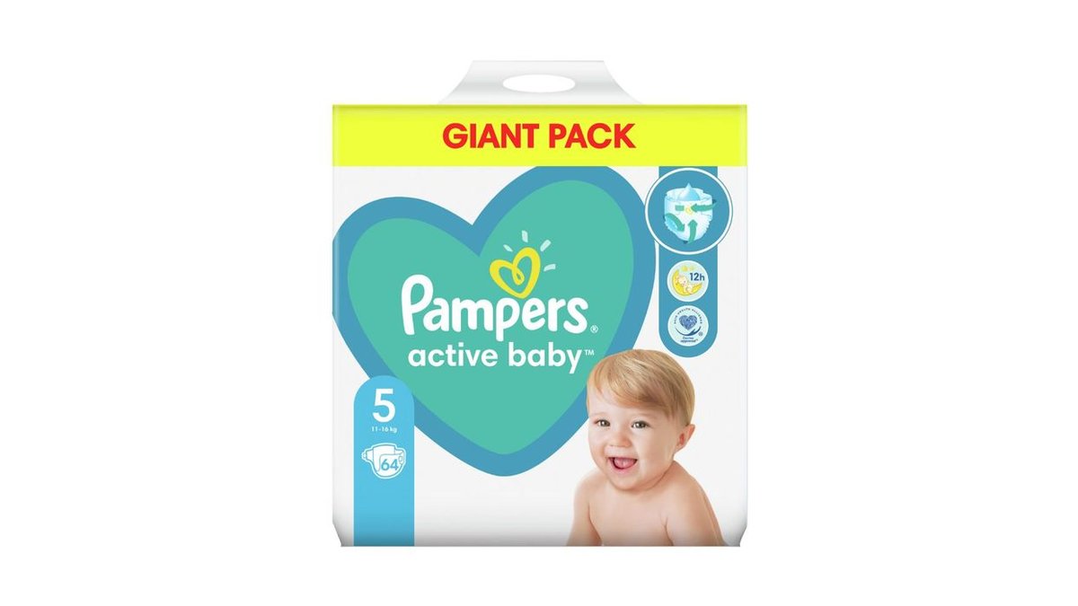 Plenice Junior Št.5 11 do 16 kg Active baby dry Giant Pack, Pampers (64 kosov)