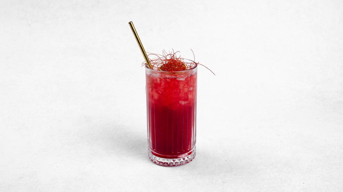 Naš signature koktajl Butterfly Effect, vsebuje gin, vodko, vrtnico, sivko, limono in limeto