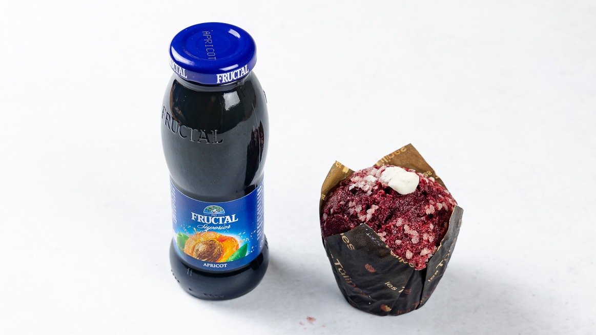 Muffin red valvet z vanilijevo kremo in sok 0.2 l po izbiri