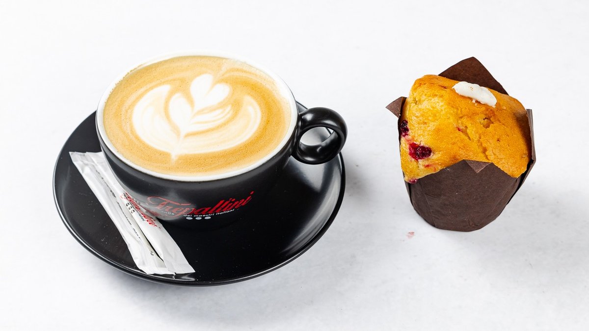 Muffin z grškim jogurtom in brusnicami in topli napitek po izbiri
