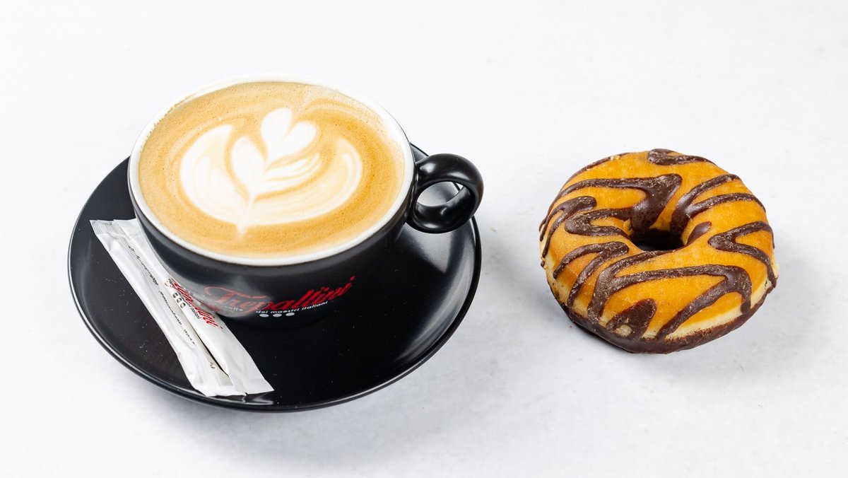 Donut s pistacijo in topli napitek po izbiri