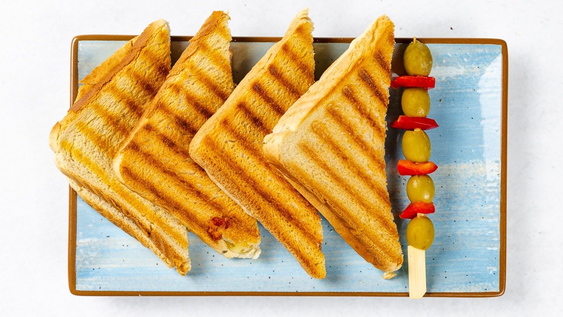 2x sendvič z ameriškim toastom, glavno sestavino po izbiri in posebej dodanimi olivami