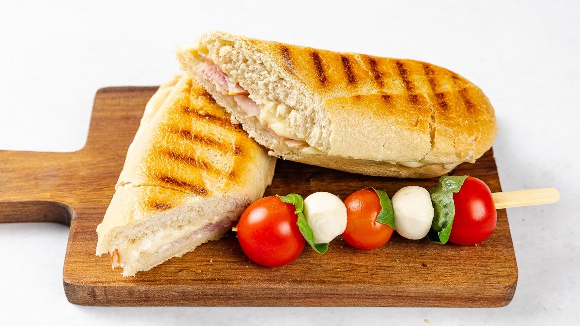 Domač panini s šunko, češnjev paradižnik in mozzarella