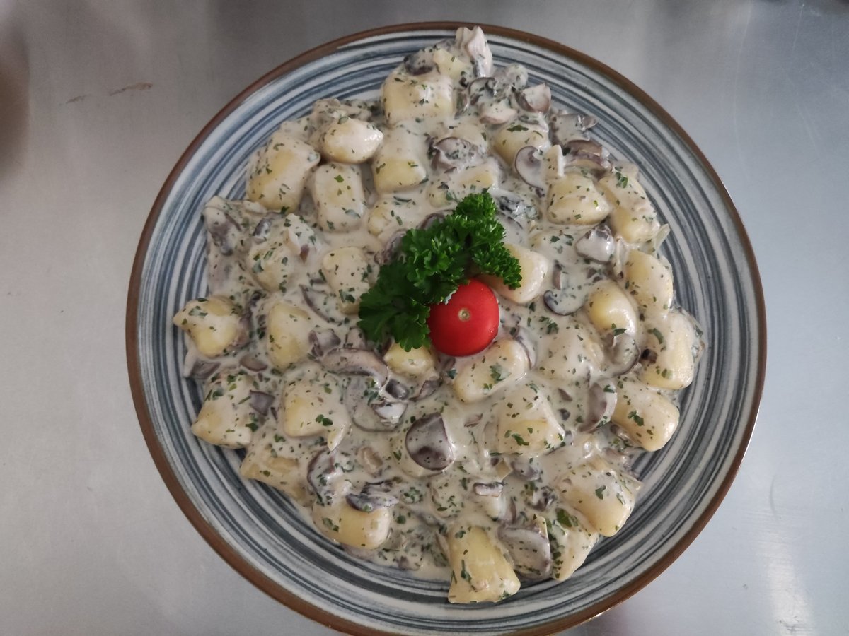 Njoki s piščancem v gobovi omaki