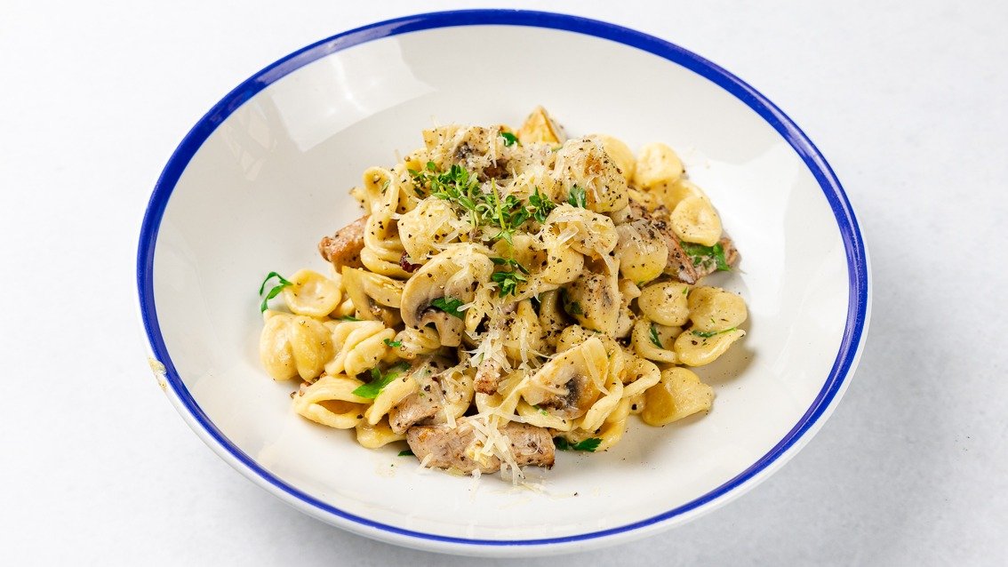 Pasta con Vitello alla Boscaiolla