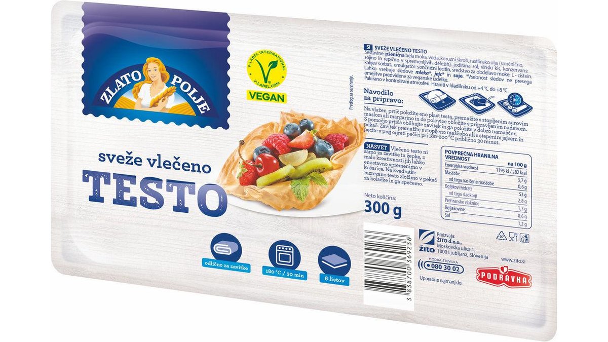 Testo Zlato Polje, vlečeno, sveže, 300 g