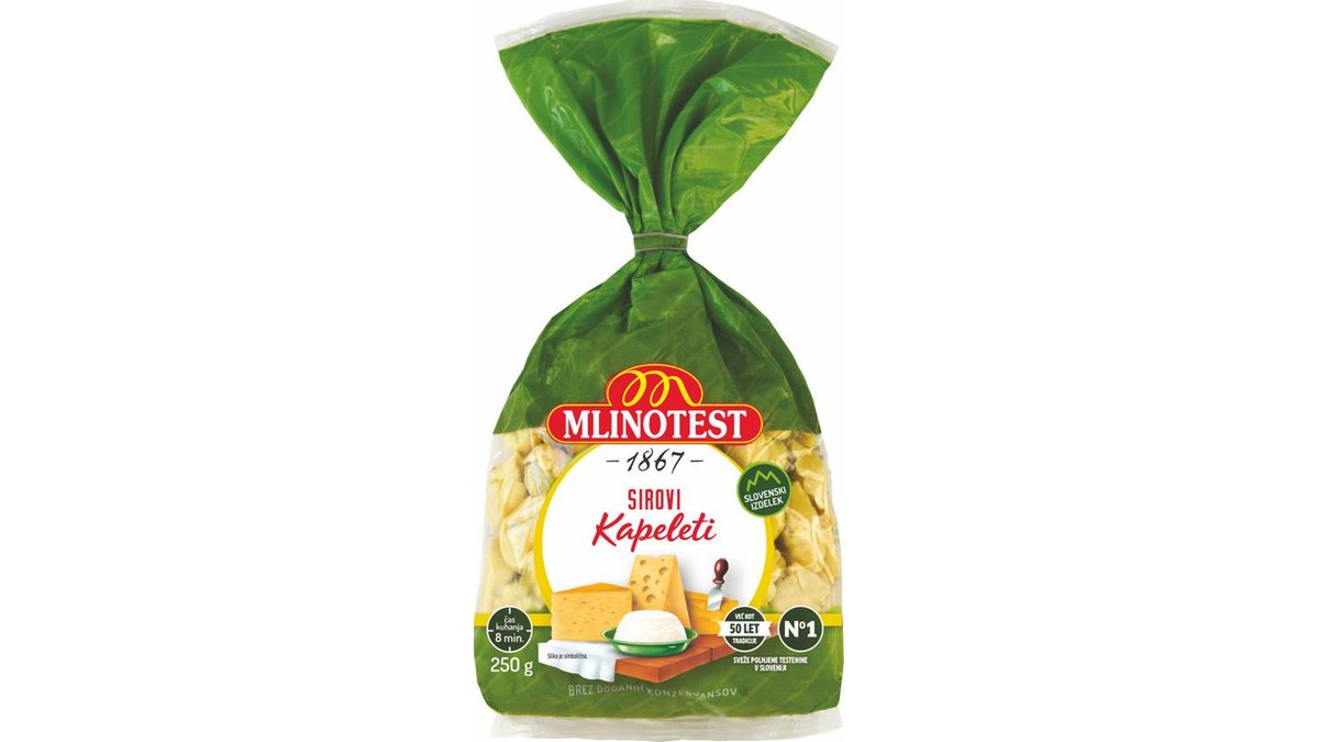 Kapeleti Mlinotest, sirovi, družinsko pakiranje, 500 g
