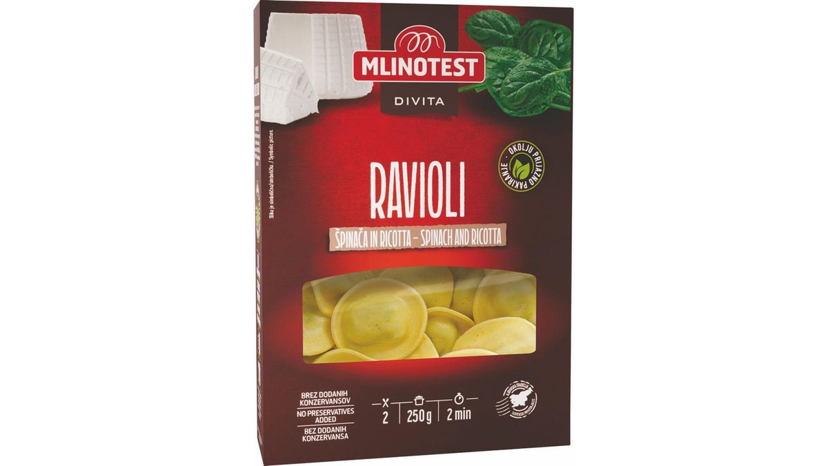 Ravioli Divita, špinača in ricotta, 250g