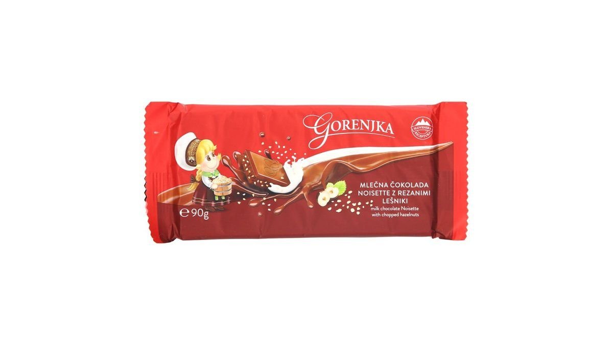 Mlečna čokolada noisette z rezanimi lešniki, Gorenjka (90 g)