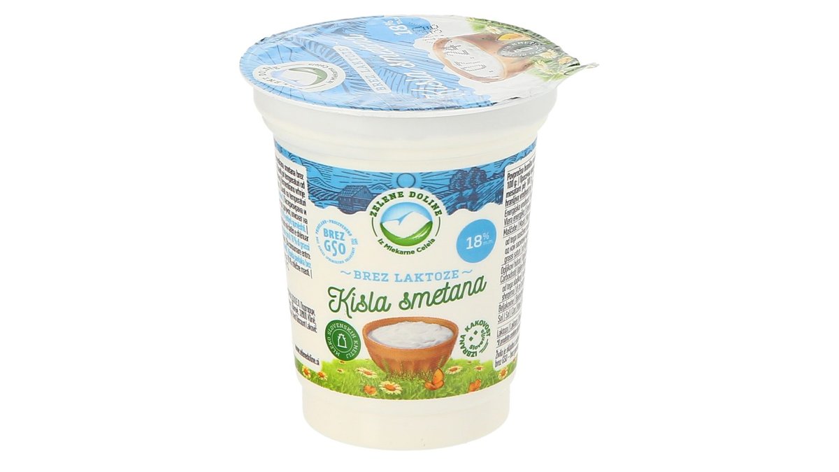 Kisla smetana brez laktoze 18 % M.M., Zelene Doline (180 g)