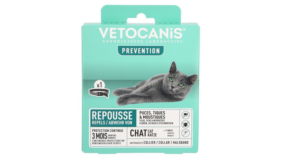 Ovratnica za mačke, proti klopom in bolham 3 mesečna, Vetocanis (35 cm)