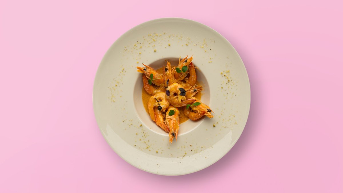 Linguine të freskëta në salcë kremoze kungulli, me karkaleca të sautuar & aromë hudhre e vaj ulliri.