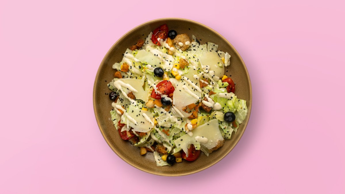 Me gjoks pule të griluar, sallatë romaine, krutone, djathë parmixhano & salcë cezar