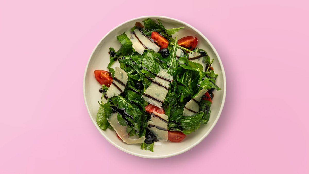 Me rukola të freskët, djathë parmixhano, arra dhe vaj ulliri ekstra të virgjër