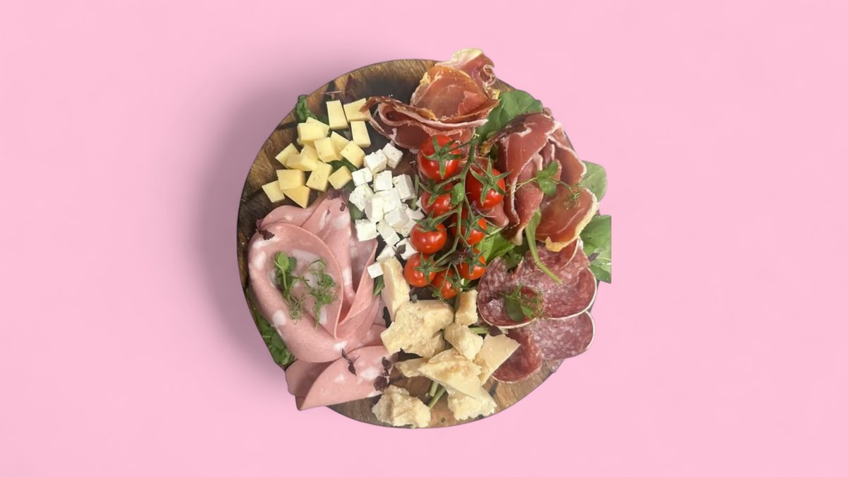 Përfshin proshutë krudo, sallam pikant, djathë brie, gorgonzola dhe grana