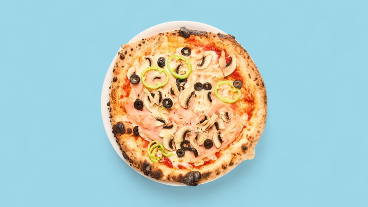 Pomodoro, mozzarella, prosciutto cotto, funghi, peperoni, olive