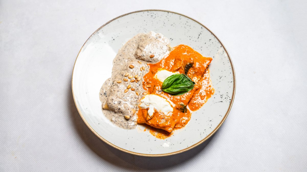 Salcë kërpudhe, borzilok, krem tartufi, stracciatella