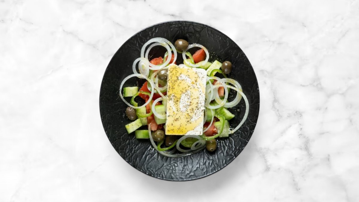 Domate, djathë, vaj ulliri, rigon, ullinj