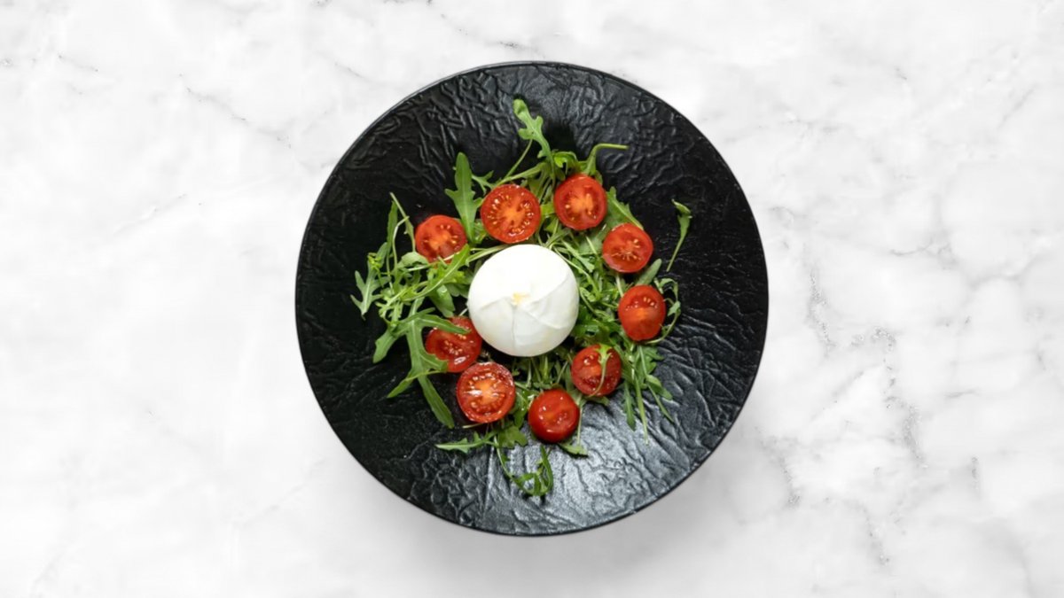 Salcë domatesh, mozzarella, mortadella, mozzarella bufala, fistikë, borzilok
