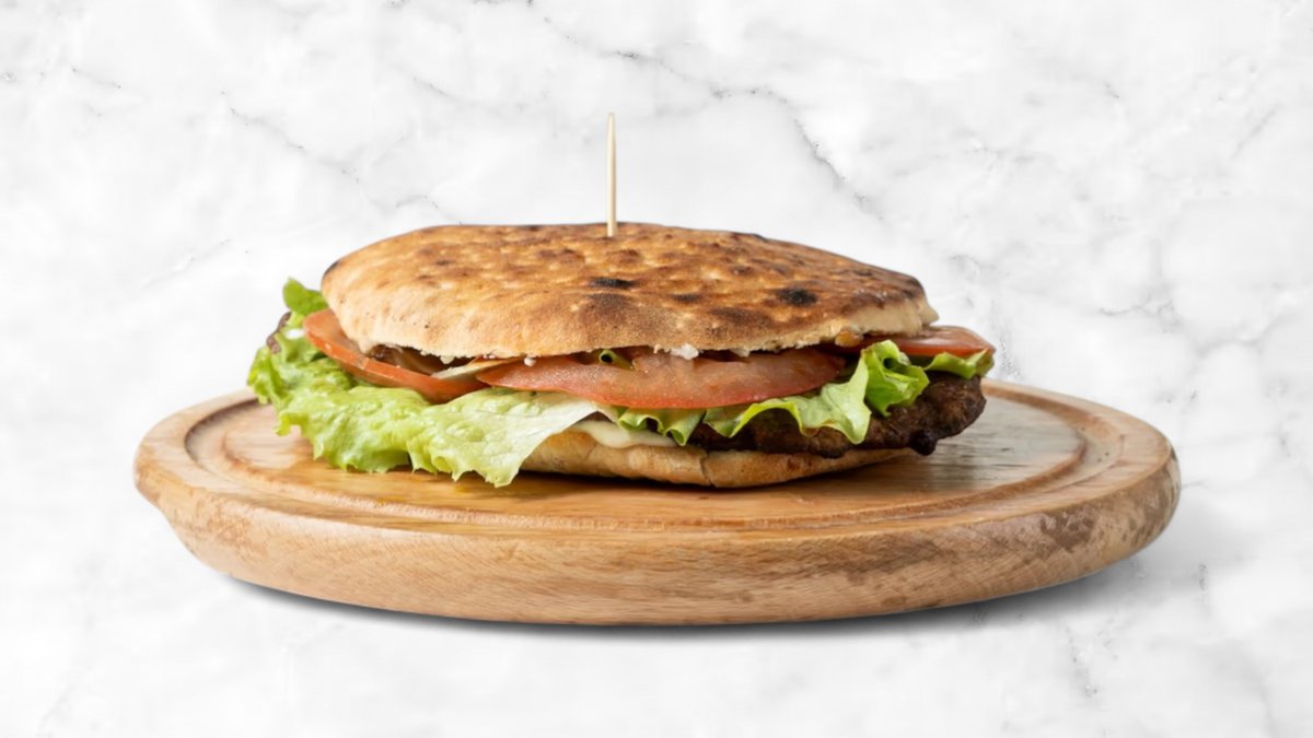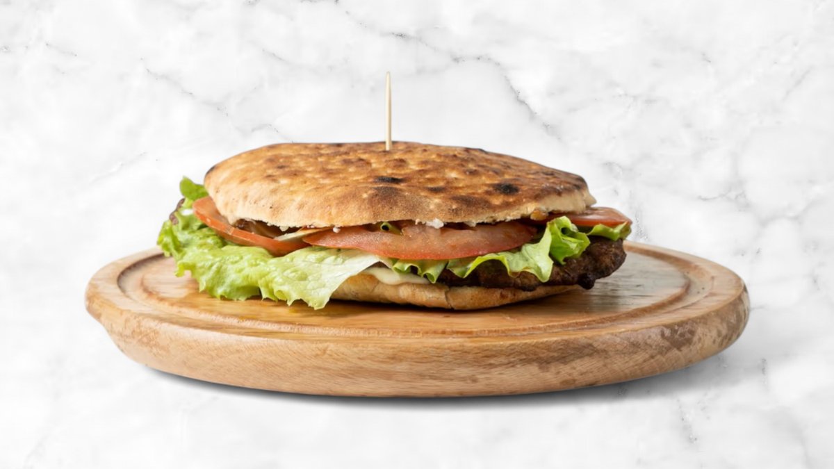 Majonezë, qofte, barbeque, gouda, domate, sallatë, ullinj