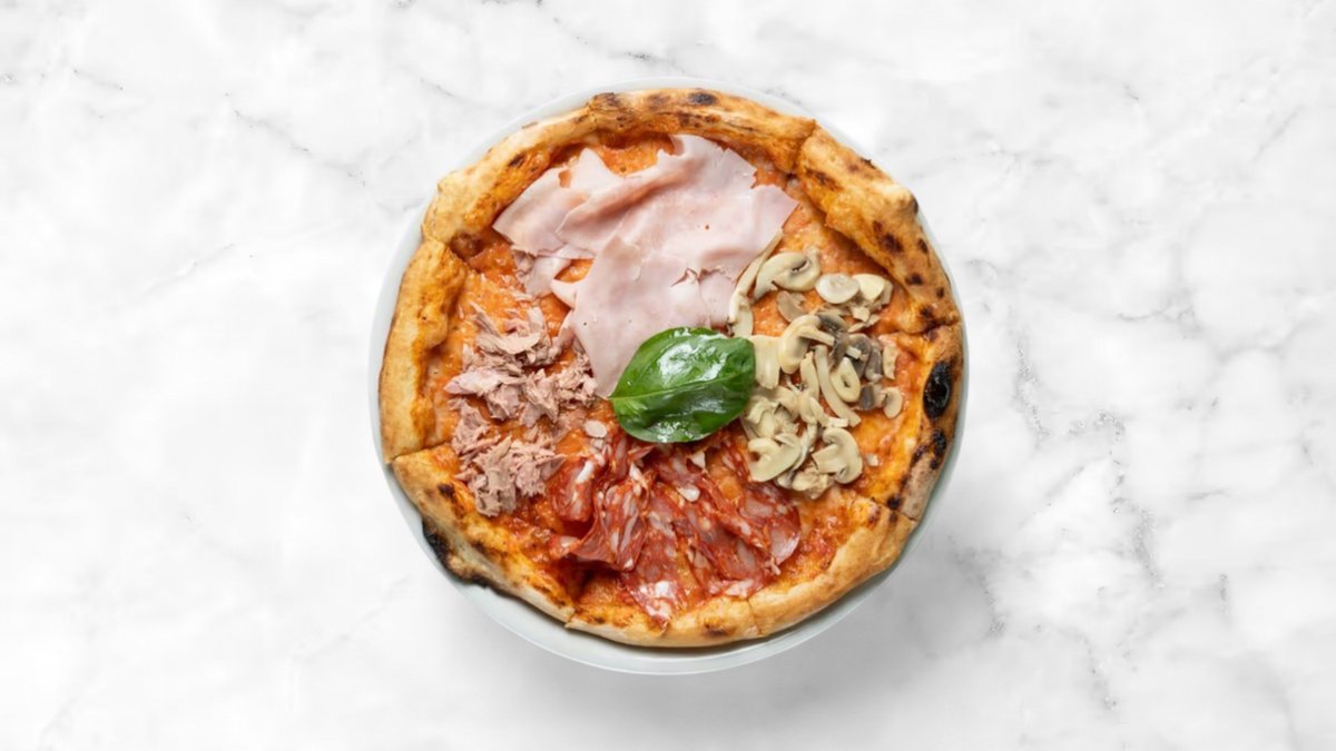 Mozzarella, proshutë, sallam, ton, kërpudha