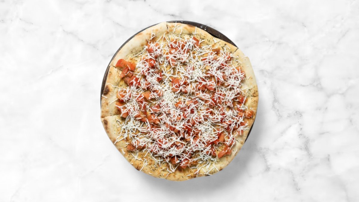 Pesto, mozzarella, grana, ciliegini, proshutë krudo, pomodorini