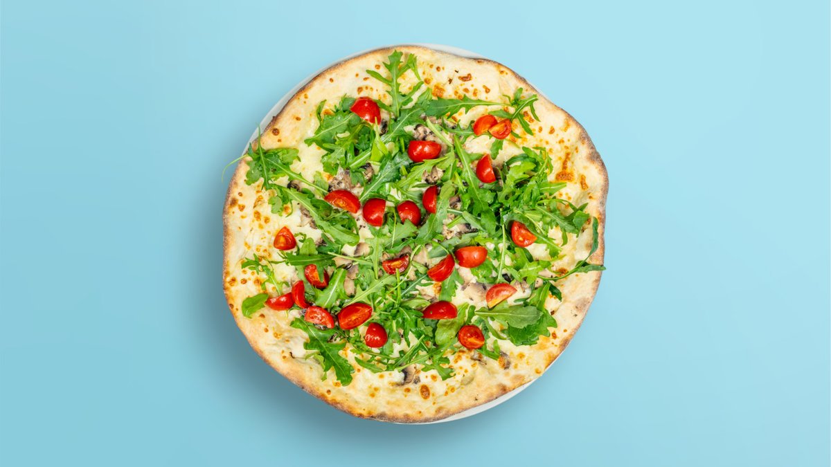 Mozzarella, kërpudha, gorgonzola, karçof, rukola, pomodorini